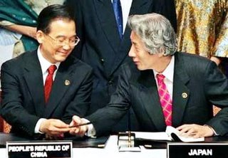东亚领袖聚会,在签署《吉隆坡宣言》时,日本鬼子小泉显然刻意“忘了”带签字笔,而要向大会刻意安排在邻座的中国总理温家宝“借笔”。温总理不卑不亢满足了小泉所求。