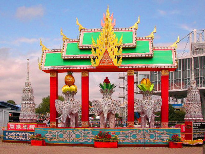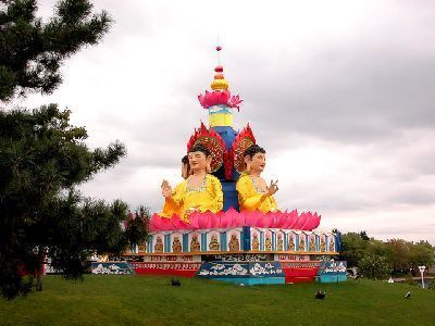 游乐园前面的四面佛 --------------- 还算高大,老远就能看到。在国外能看到的中国艺术元素好像就是佛,道(仙家)和龙。