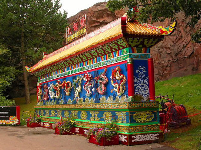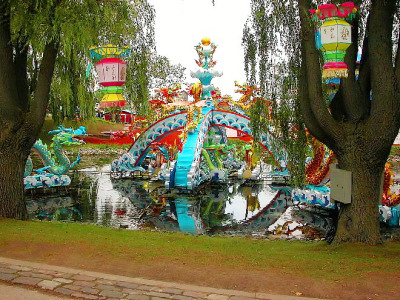 *中国彩灯展* 2006年9月 多伦多的安大略游乐园是个不错的小岛--说是小岛,其实就紧挨着湖边,仅仅只有几十米的水道和多伦多区域相连的小岛。 过去岛上没有什么游乐设施,也不会有多少人去。今年春天来了一些中国工匠,扎了一些彩灯,今年夏天就热闹了。
