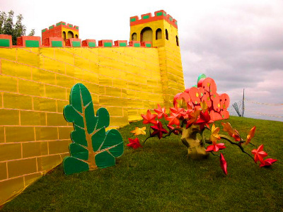 用瓷器建造的龙 --------------- 很长很长的一条龙,建造它用了很多瓷盘,汤勺,酒杯等。