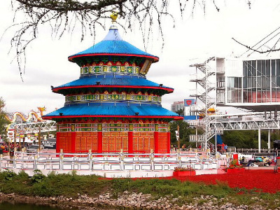 彩灯牌坊 --------------- 牌坊後面是安大略游乐园的标志。