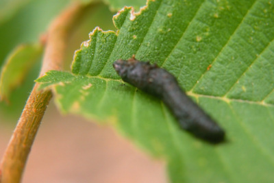 小虫长得真快 --------------- 要拉屎了,退几步,抬抬头,拉完了再回到原位继续吃。