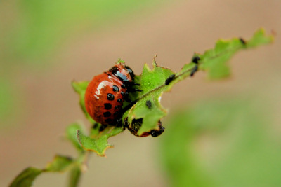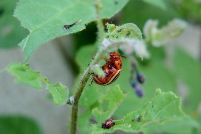 土豆甲虫是土豆的一大害,就像蝗虫对禾类作物的危害一样,土豆甲虫可以在很短的时间里把大片的土豆叶子吃个精光。