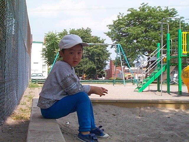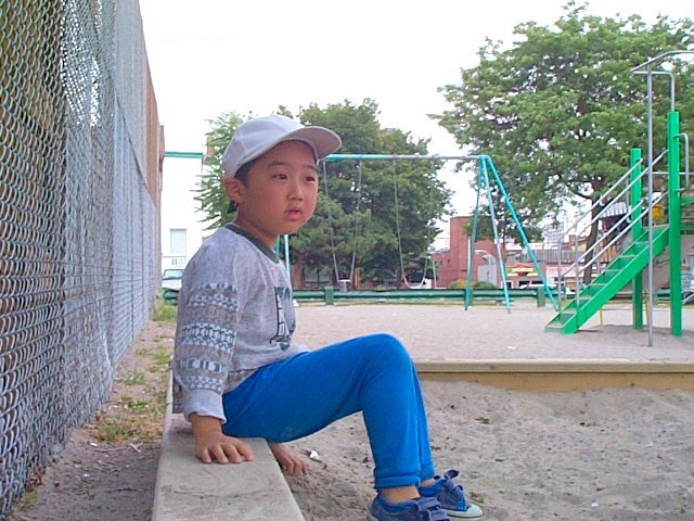 图四:一层厚厚的云彩遮住太阳的时候拍照。这个时候就不需要闪光灯了。因为没有太阳光的直射,背景和人物的光强反差大大减小。但在这时,由于整体曝光靓增加了很多,对于同样明亮的天空来说,增加了的曝光量,使背景的天空一片惨白。而且,远处的树木也大大地缺乏层次了。