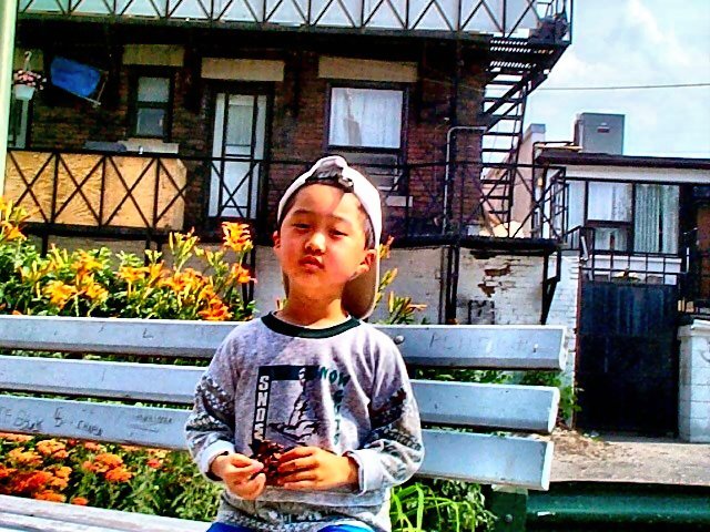 图二:顺着阳光入射的方向取正面光。对于人脸来说,没有阴影和疤痕状的情形,可是,被阳光照得太亮的脸,色彩比较平淡,脸上没有轮廓,而没有被阳光照射到的脖子,成为了棕色。